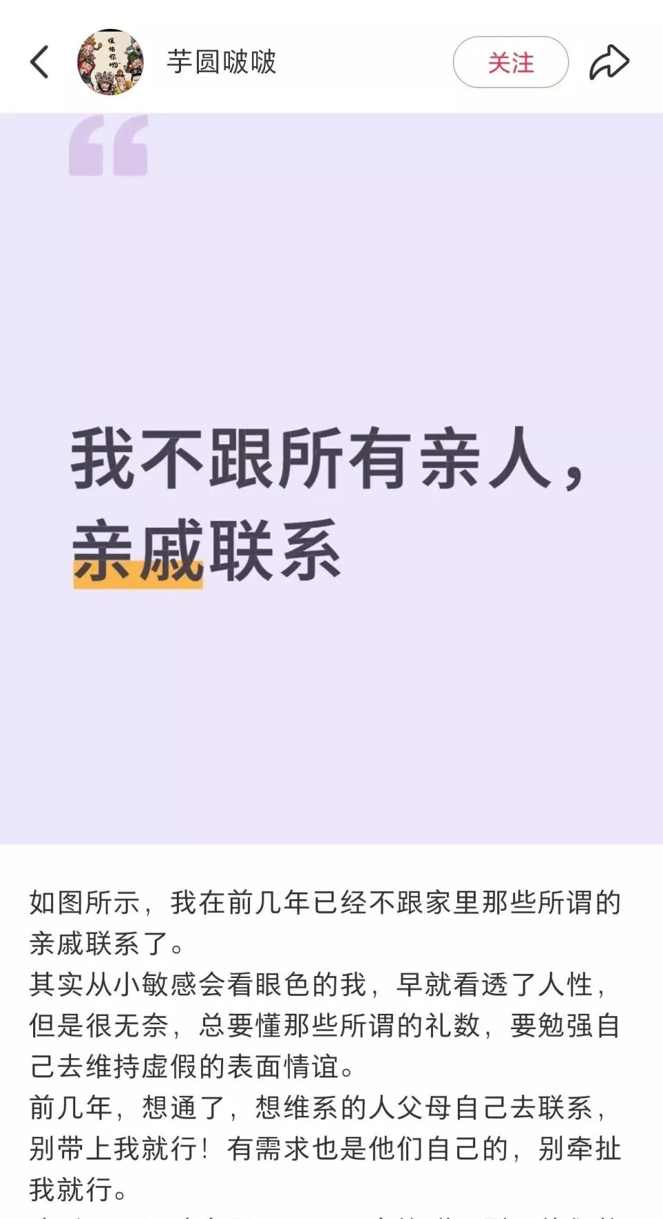 亲戚们大多住在同一个村里,日常来往频繁,时常有亲戚来咏仪家串门,她出于礼貌也得陪聊陪笑。线下聚会无法抽身,咏仪选择在家族群中变得“沉默”,不再参与聊天,有人问起来就是“工作很忙抽不开身”。