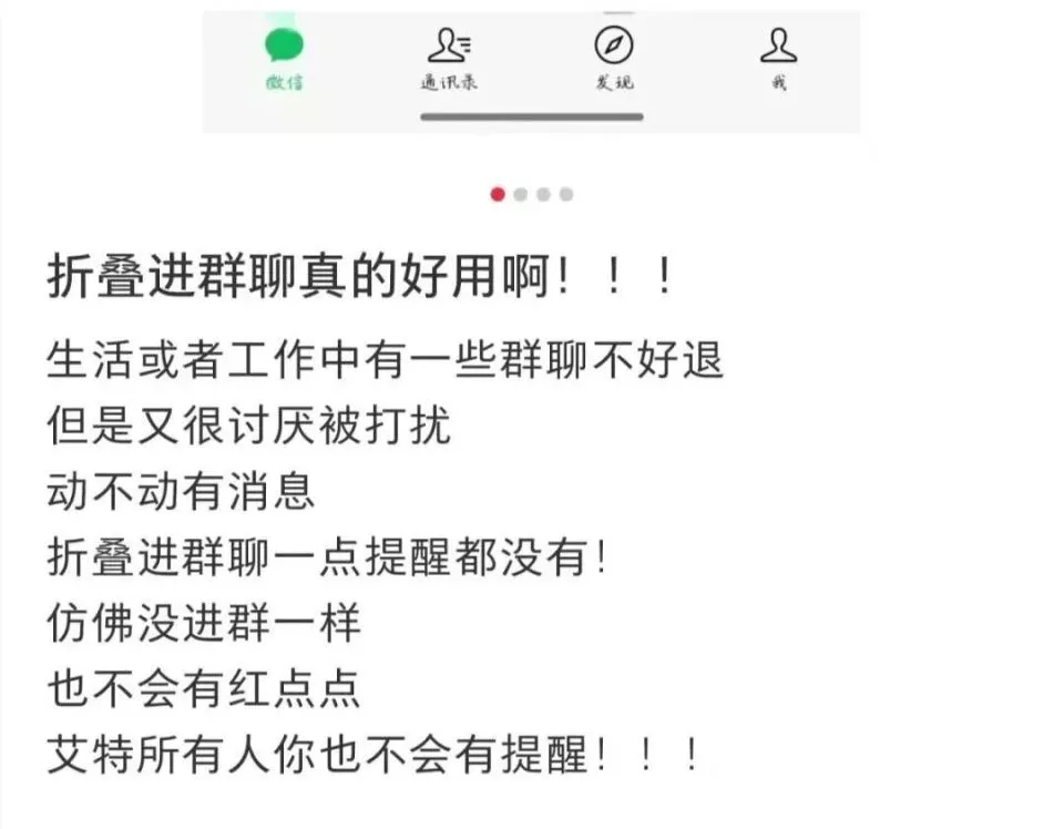 不装了,摊牌了,我宣布世界上最伟大的发明之一是微信折叠群聊功能,一生唯爱“中庸”的中国人狠狠点了个赞。