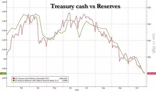 这场即将到来的发债潮,恰逢美国货币市场关键流动性指标“告急”。由于美国政府停摆迫使美国财政部囤积现金,市场流动性已被大幅抽干,其效果堪比多次加息,这使得任何新增的资金需求都可能放大市场的波动性与风险。