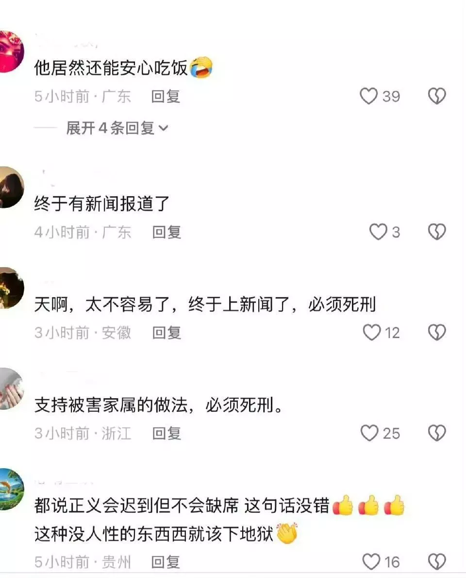 “拒接电话被捅”、“两吨水警告”(源自另一起案件)……一些网民将血淋淋的悲剧消解为轻松的“梗”,在评论区调侃、嬉笑。这种对受害者痛苦的漠视,这种对恶性犯罪的娱乐化消费,不仅是对家属的二次伤害,更是在无形中拉低了全社会对暴力的容忍阈值。