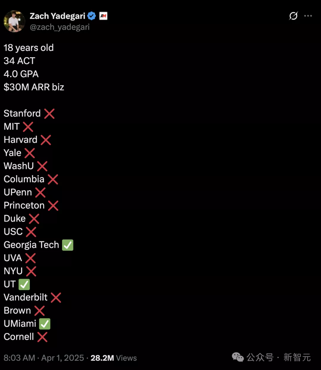 虽然拥有丰富的创业背景、GPA满分以及34分(接近满分)的ACT成绩,但Yadegari仍然收到超过十所常青藤盟校等知名学校的拒绝信,甚至连以「创业圣地」著称的斯坦福大学也未录取他。