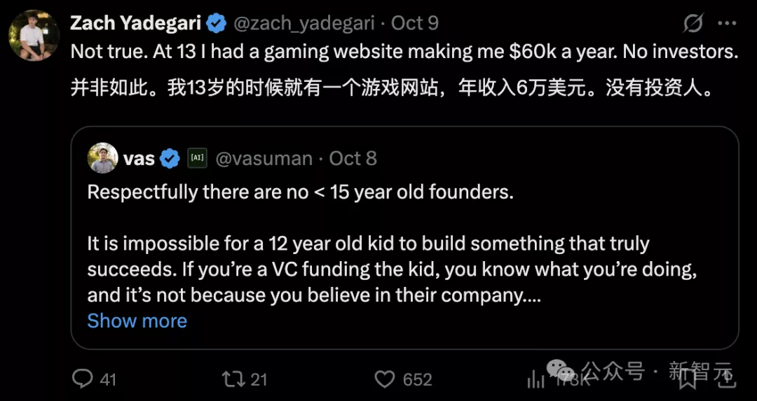 一位创投圈的网友vas曾发推表示:「恕我直言,不存在15岁以下的创业者」。