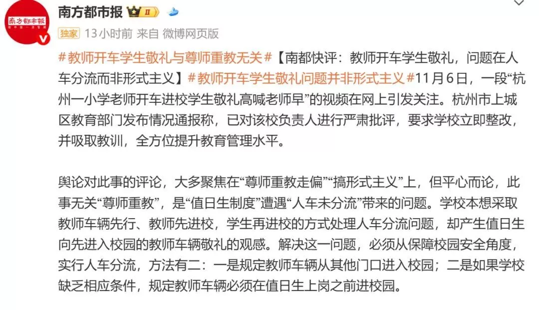 这两天有一个视频在网上流传,一个杭州的小学,老师开门进学校,值日的同学大声嚷着:“老师早。”