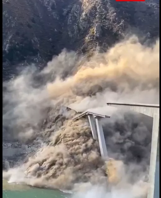 ,11月11日,网传四川省阿坝州马尔康市双江口水电站红旗特大桥发生垮塌。视频显示,该桥桥体坠入下方的足木足河中,腾起巨大烟尘。当日下午6时许,马尔康市政府工作人员告诉极目新闻记者,确有此事,目前伤亡情况不明。China’s engineering marvel