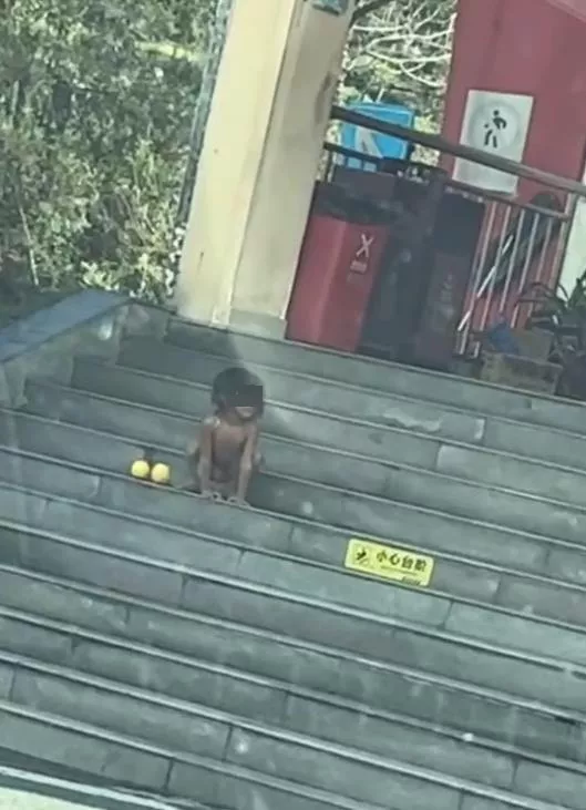 孩童浑身赤裸、头发凌乱。(极目新闻)