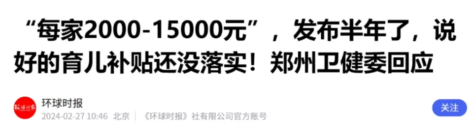 “安徽省二胎补贴刚轮到我的时候,卫健委打电话说省内所有二胎补贴全部追回,已发放的从育儿津贴里扣除,没发放的直接截回。”