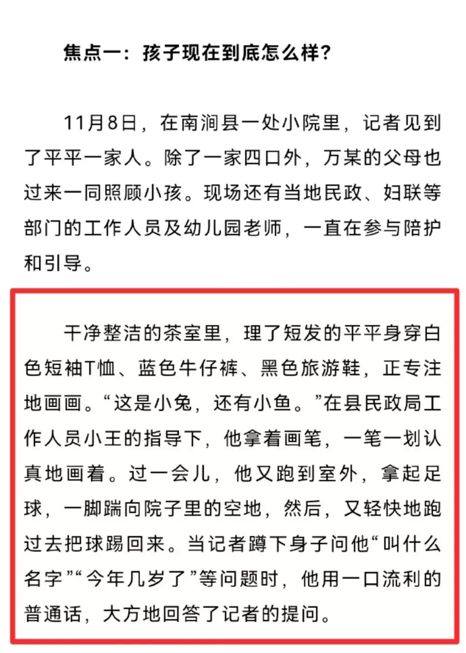 现在平平已经穿上了衣服,相关部门将继续做好李某某、万某思想教育引导工作。
