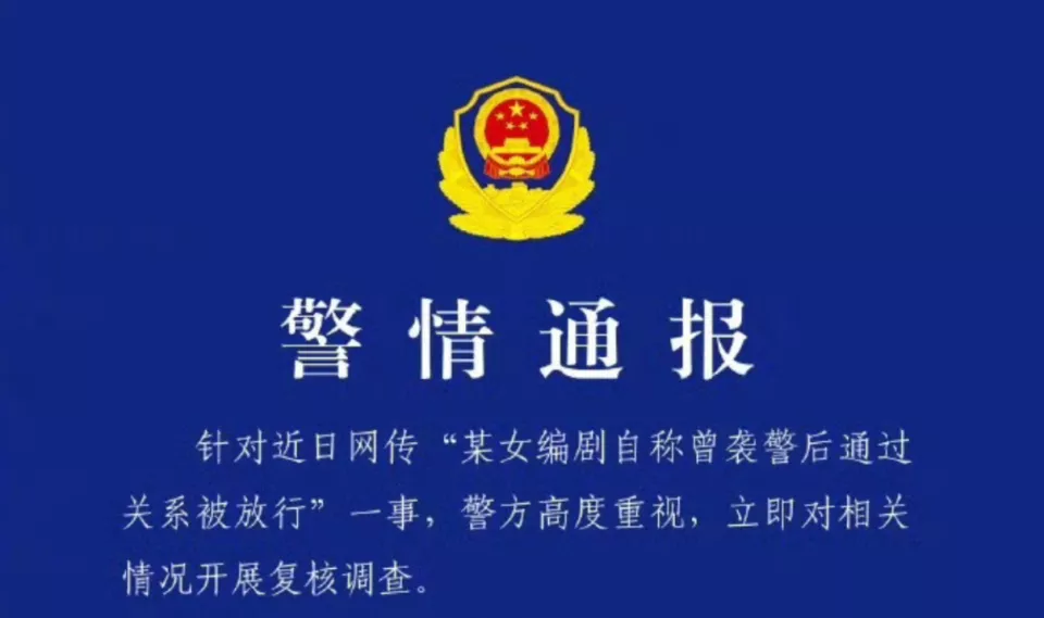 11月11日,上海警方通报此事,经调查,当时编剧秦雯人行道骑车被拦,发生争执后她拍了民警后背,被带回调查,因情节轻微不予处罚。
