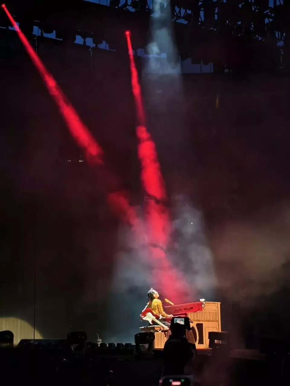 而且现场的氛围一点都不比之前看的演唱会差,甚至设计了很多在北上广看不到的情节,比如在唱《王妃》的时候,台上不光喷起了火,还喷了高压水炮,“蛮惊喜的,因为当天是没有下雨的,他就造了一点,大家就觉得很有意思,他玩自己的梗。”绵绵说。