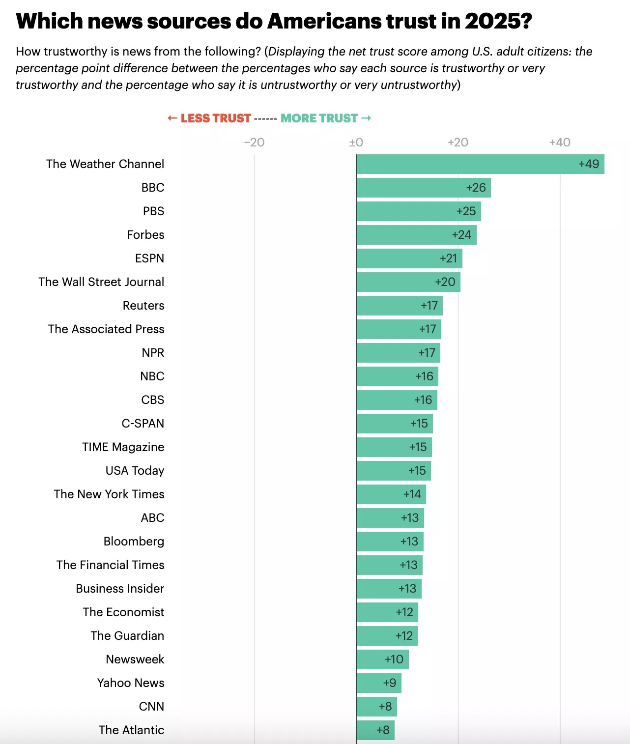 根据YouGov的数字,BBC在美国的公信力仅次于“天气频道”(The Weather