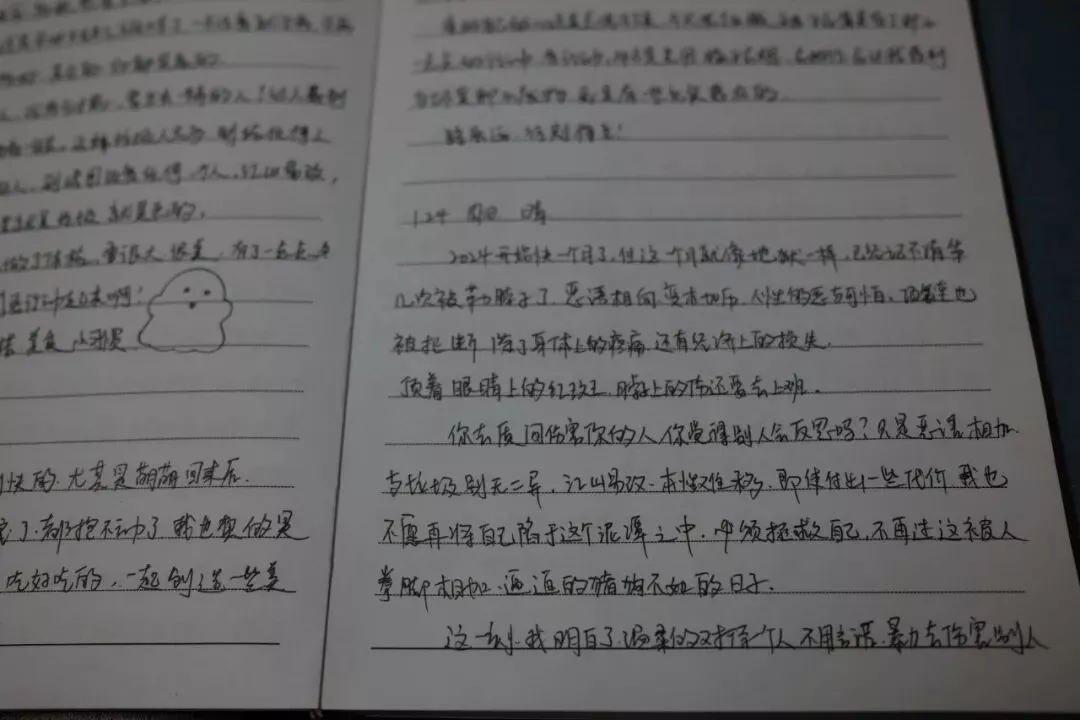 她的书架上有一本《非暴力沟通》,里面留有不少勾画痕迹。她还在日记中记下读书笔记,提醒自己“认清错误即错误,它不代表你”,“要用思维来反抗,消除情绪上的痛苦”,“本身俱足,不会去幻想未来有任何事情或任何人将会拯救你或使你开心”。