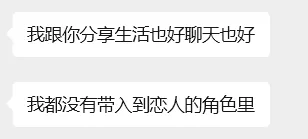 后来,青青忍不住给对方发了一段消息:“我还挺喜欢你的,如果你也喜欢我的话,我可以按照你的节奏来。”对方的回复也很直接,“我们平时的聊天都是站在朋友的立场,而非恋人的角度,我对你的感情也是”。