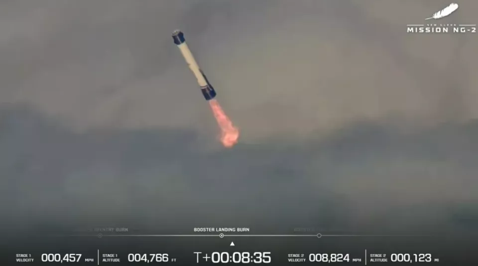 北京时间周五凌晨,蓝色起源公司的新一代重型运载火箭“新格伦”成功升空,将NASA的两个火星探测器送入太空。