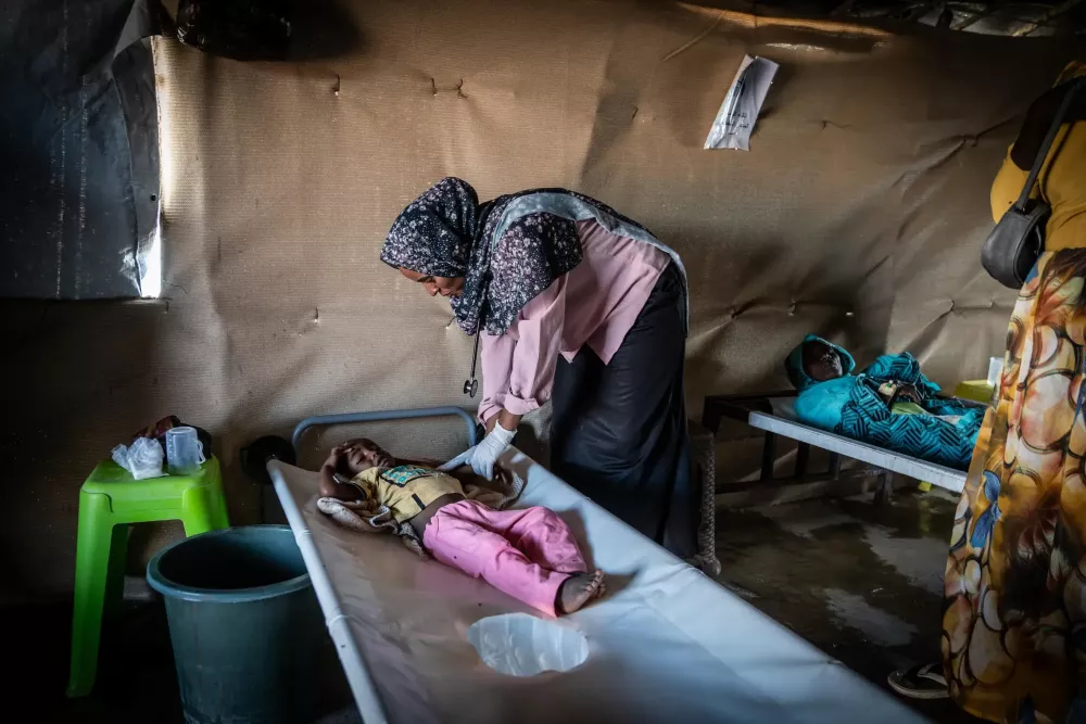 Toom正在为一名患有霍乱的儿童患者进行治疗/图源:联合国人道主义事务协调厅