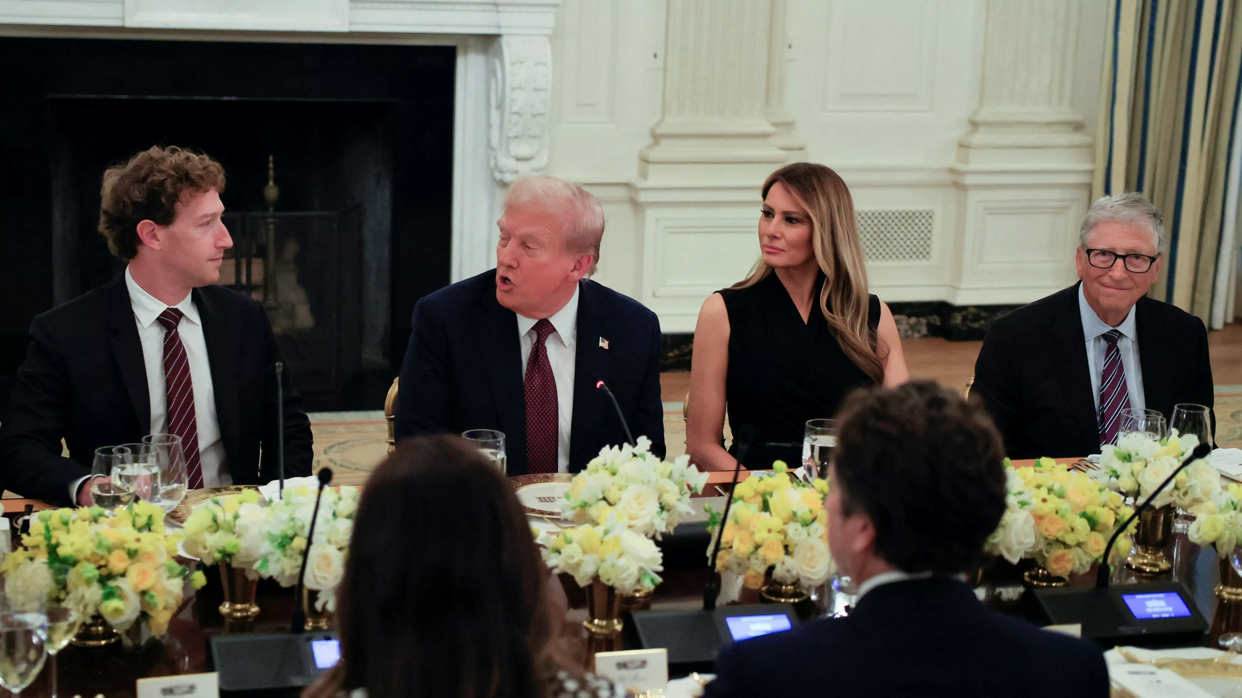 Trump)在白宫举行私人晚宴,与各大科技公司CEO共进晚餐。Meta行政总裁扎克伯格(Mark
