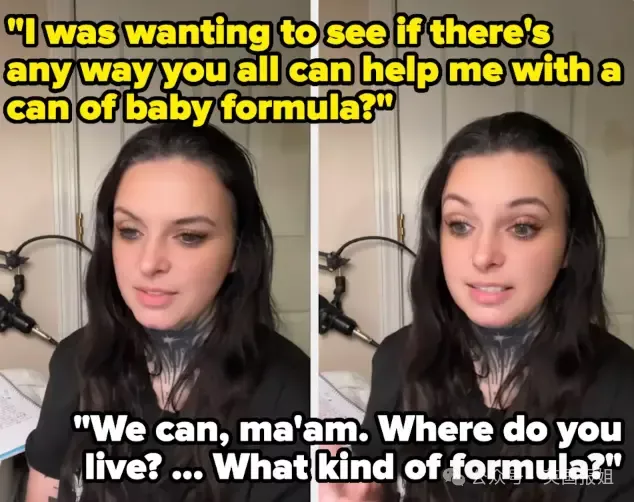 更夸张的是,在路易斯安那州巴吞鲁日的教堂,直接拒绝了她的要求,没有问她是否是会员或者告诉她有啥程序,就只说了“我们不能给你奶粉”。