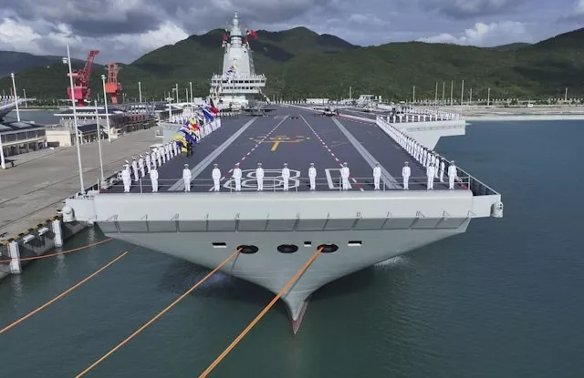 图为11月5日,福建舰在海南三亚入列。(新华社)