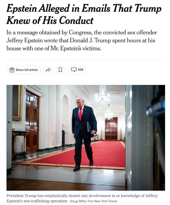 更关键的是,民主党选择在政府刚刚结束“停摆”、舆论本应追问“谁应为政府‘关门’负责”的时间点抛出邮件,明显是要借用“爱泼斯坦”这个高度情绪化的符号,压过枯燥的预算争执。