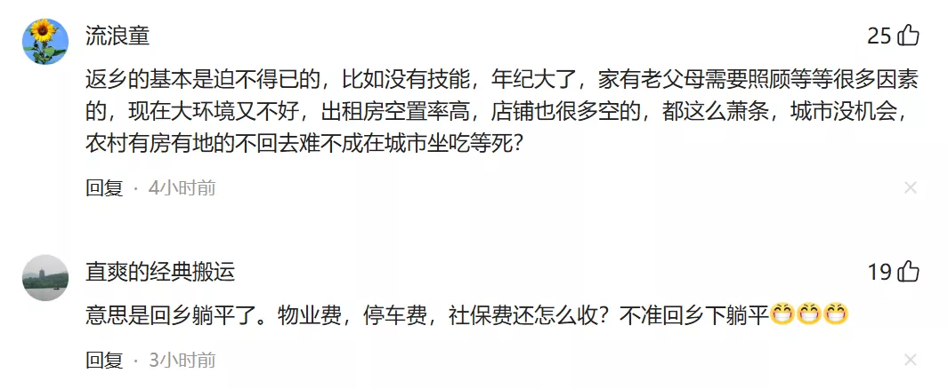 事实上,社交媒体上,拿“防止规模性返乡滞乡”这话开涮的,都漫山遍野了。