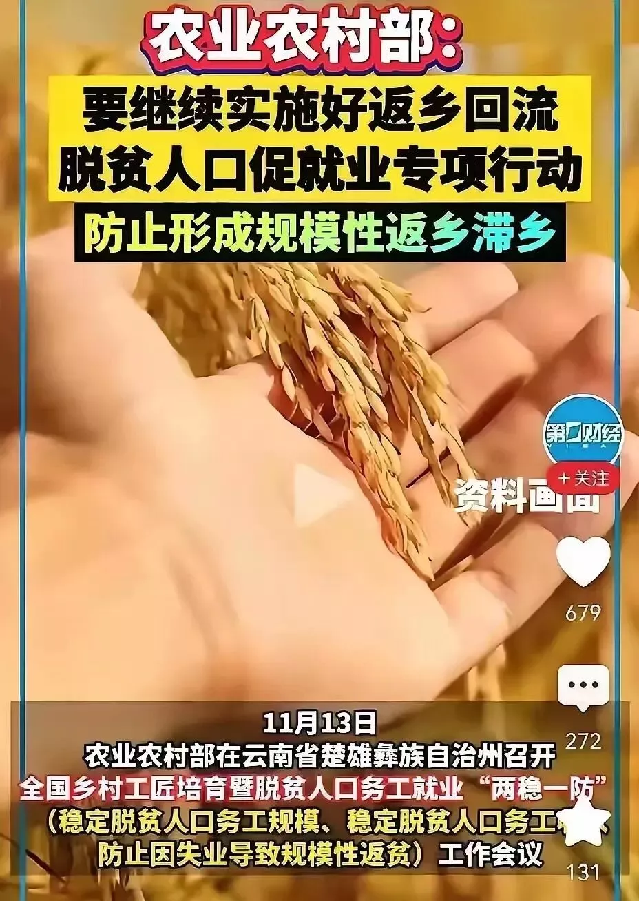 所以,上面说“防止规模性返乡滞乡”,一定也是意识到这是个问题——一个涉及大量劳动可能因为闲置带来群体性返贫问题。