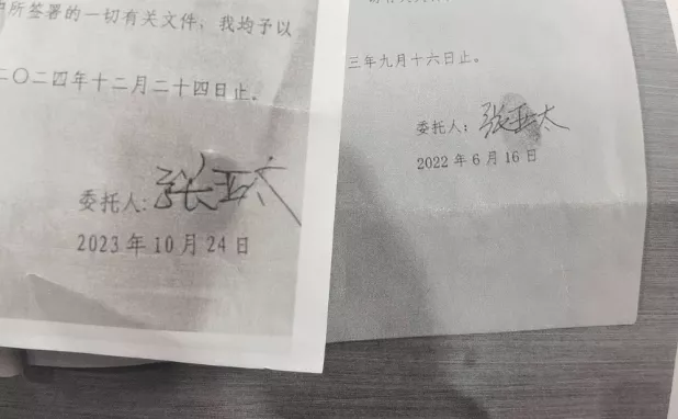 “2023年10月公证我2022年在委托书上签了字,但是委托书的落款时间又是2023年10月。”张亚太认为,公证材料本身就存在自相矛盾的地方。
