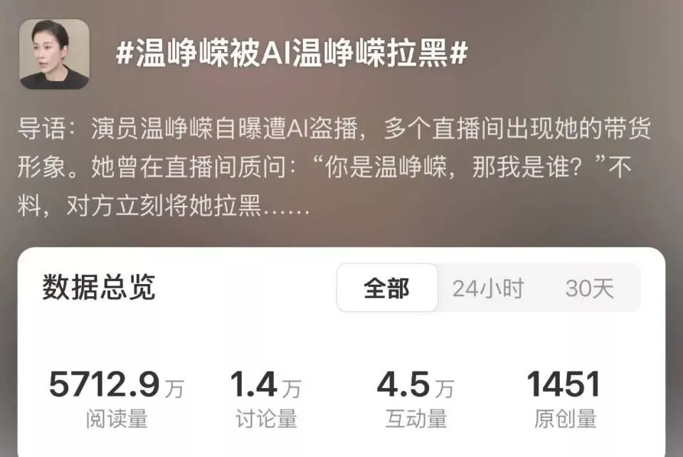 黑色幽默般的故事,甚至衍生了一个热搜词条:#温峥嵘被AI温峥嵘拉黑#。