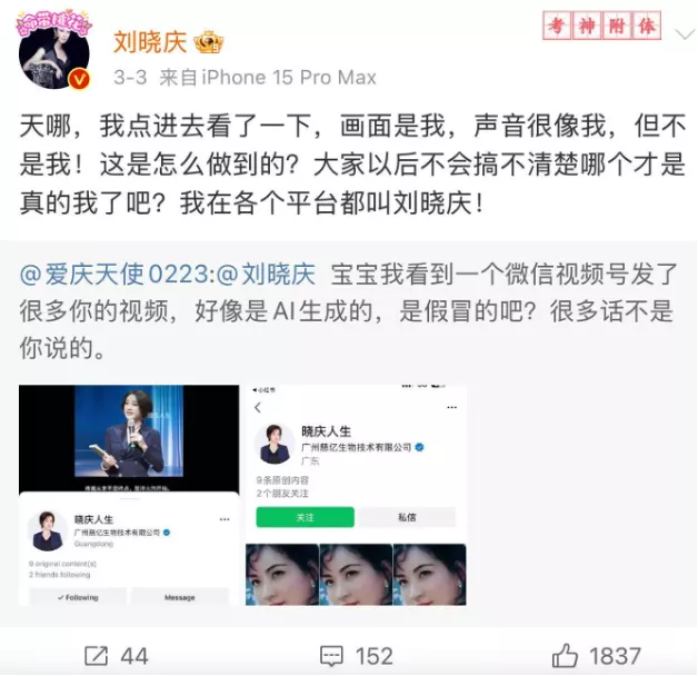 逼得刘晓庆本人不得不公开质问:“画面是我、声音很像我,但不是我,这是怎么做到的?”