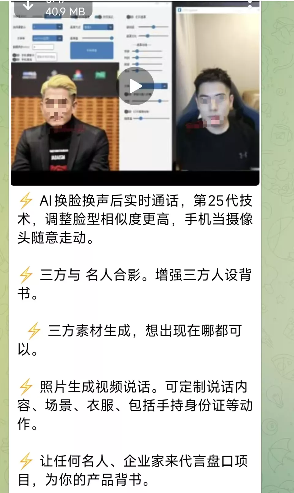 还有人专门组合兜售诈骗软件和教程,大言不惭地宣称用这套工具做出来的伪造内容,“找不到丝毫破绽” 。