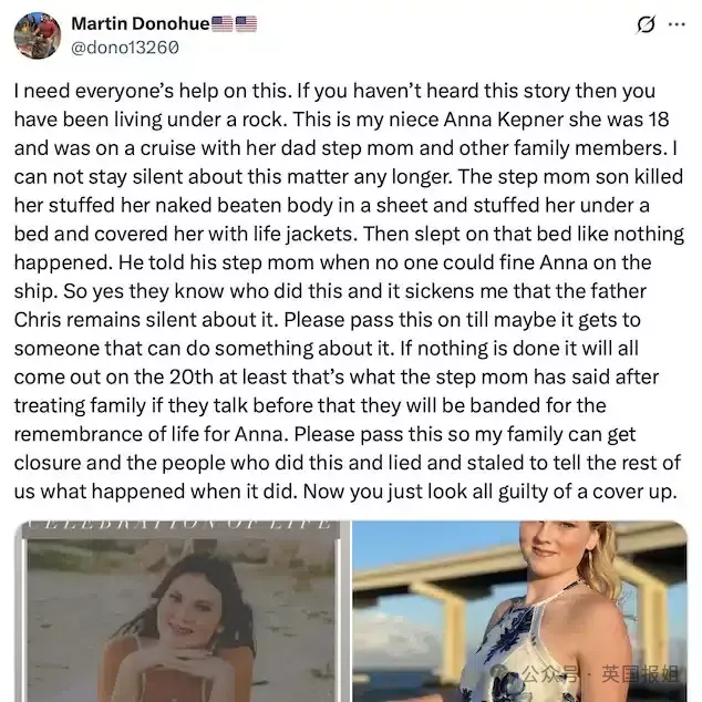 几日后,一名自称是安娜舅舅的男子在各大社交媒体、各大平台上发帖,恳求大家关注这个案件。