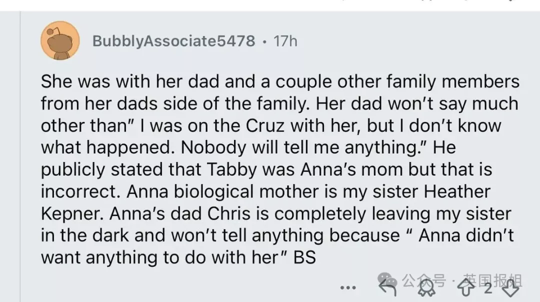 耐人寻味的是,这条帖子似乎与安娜生母发出的消息遥相呼应……