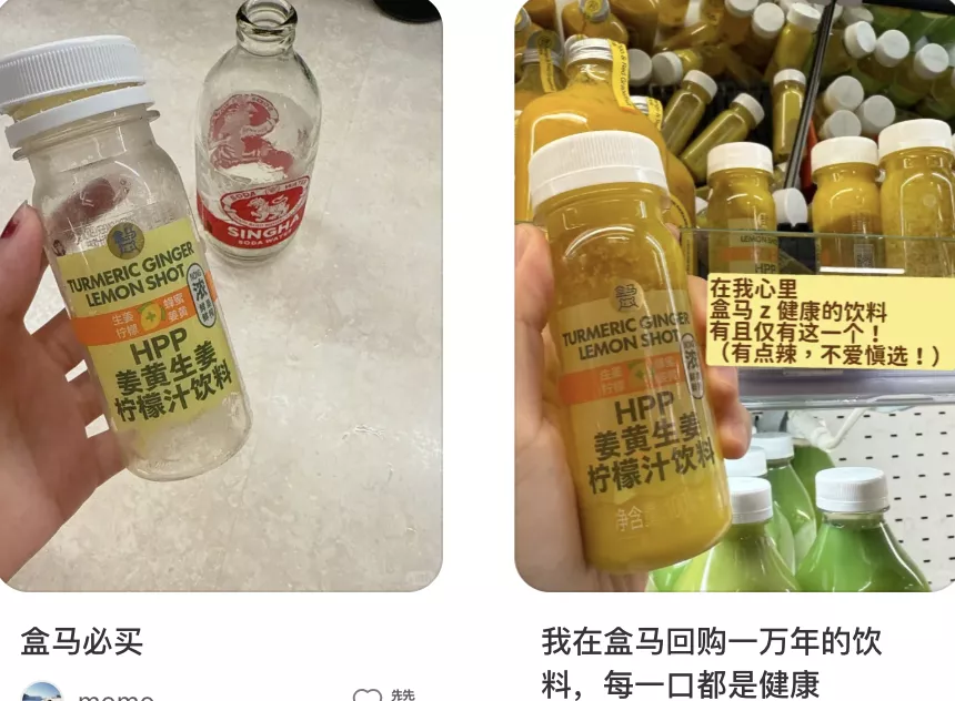 关键是,打开盒马App,这瓶黄色小饮料仍时常断货。姜黄饮顶流至此,出于尊重我也给了它奢侈品同等待遇: