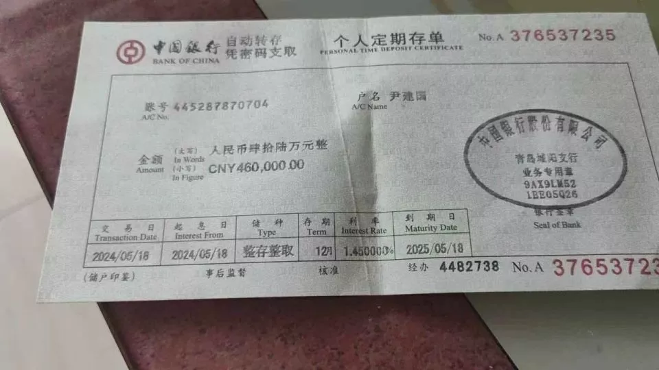 不过,回到“娘家”的日子里,申先生始终没见到尹某某任何“亲属”。他提出疑问,尹某某则解释称,是因“不门当户对”遭到阿姨轻视,母亲又未维护她,令其愠怒,而且宴席已结束,不希望再见面激化矛盾。她随即拿出一张伪造的“46万元存单”、一块假的“100克金条”