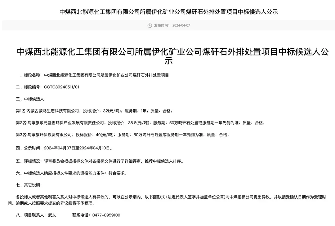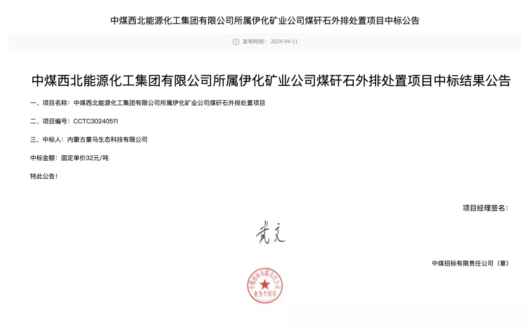 根据公开资料与村民提供的现场情况显示,涉事企业“蒙马生态”中标了伊化矿业公司的煤矸石外排处置项目。其处置场所位于内蒙古境内,但地理位置十分敏感——紧邻陕西省界,属于典型的两省交界地带。