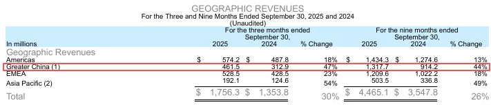 回到亚玛芬财报,横向对比其他区域市场——大中华区47%的增速远超美洲(18%)、EMEA(23%),成为亚玛芬集团最核心的增长引擎。