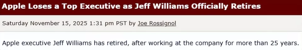 那么问题来了,比较有名的苹果高管不止他一个,比如前首席运营官杰夫威廉姆斯(Jeff