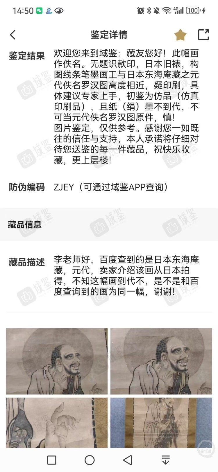 “这幅画被鉴定机构鉴定为仿真印刷品,真迹藏于日本东海庵。”来自北京的王先生告诉上游新闻(报料邮箱: