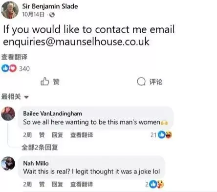 英国79岁的老贵族本杰明·斯莱德爵士就挺直接,他发布了一份征婚声明,只要满足条件,就有机会跟他结婚,然后继承他的庄园和大笔遗产。