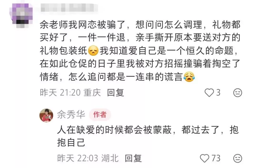 有网友在诗人余秀华的社媒评论区留言。