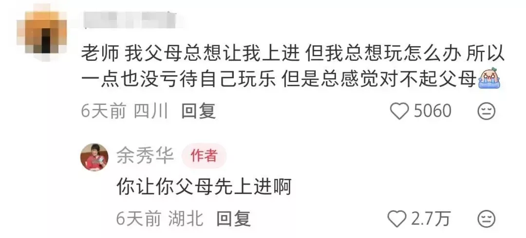 有网友问:老师,我父母总想让我上进,但我总想玩怎么办?总感觉对不起父母。