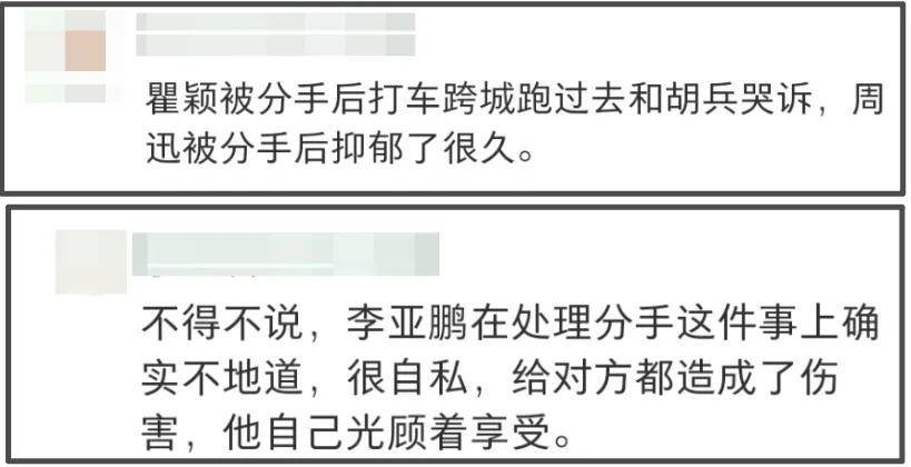 正如网友所说,李亚鹏每一次处理分手都很不地道,自私且不为女方考虑。