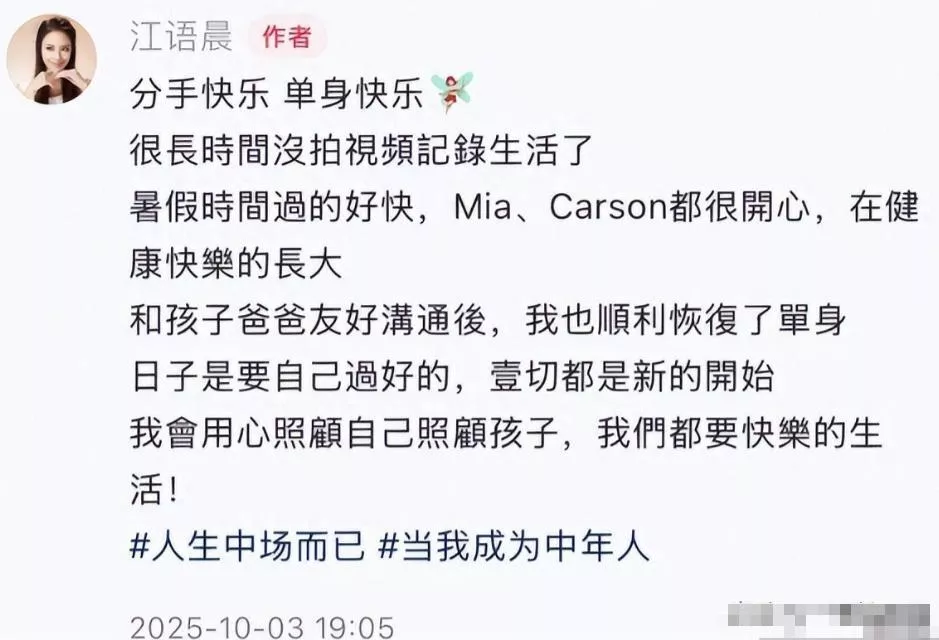 只是笑着说 “分手快乐,单身快乐”,轻飘飘的六个字,给九年婚姻画了句号。