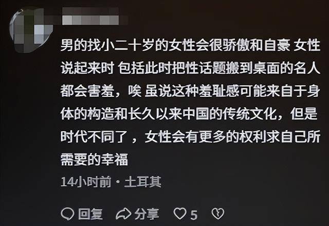 她告诉大家,自己其实有个小男友,两人已经在一起 5 年了。一开始没公布,是因为年龄差距有点大,差了 20