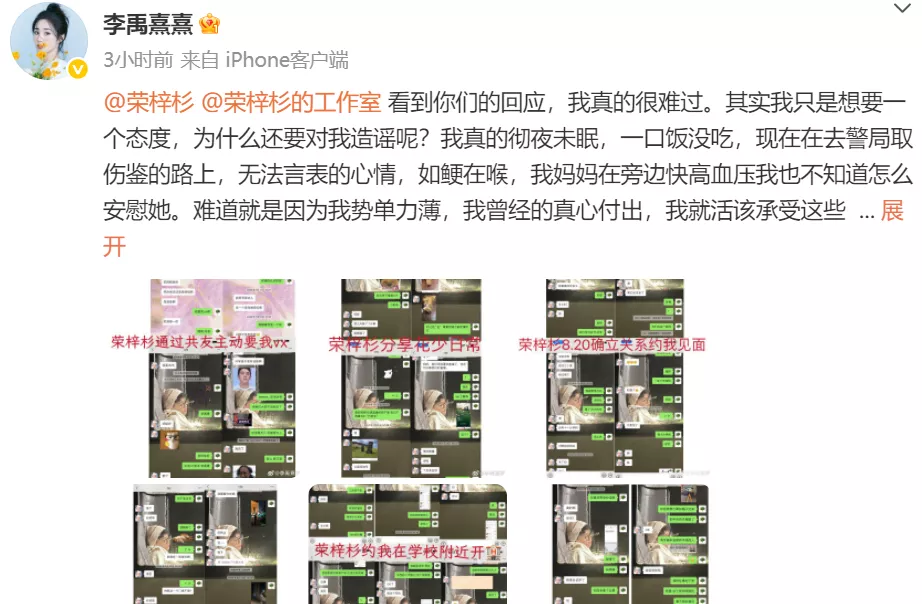 瓜一个接一个的曝,刚刚,李禹熹本尊也来晒出聊天记录,继续锤荣梓杉了。