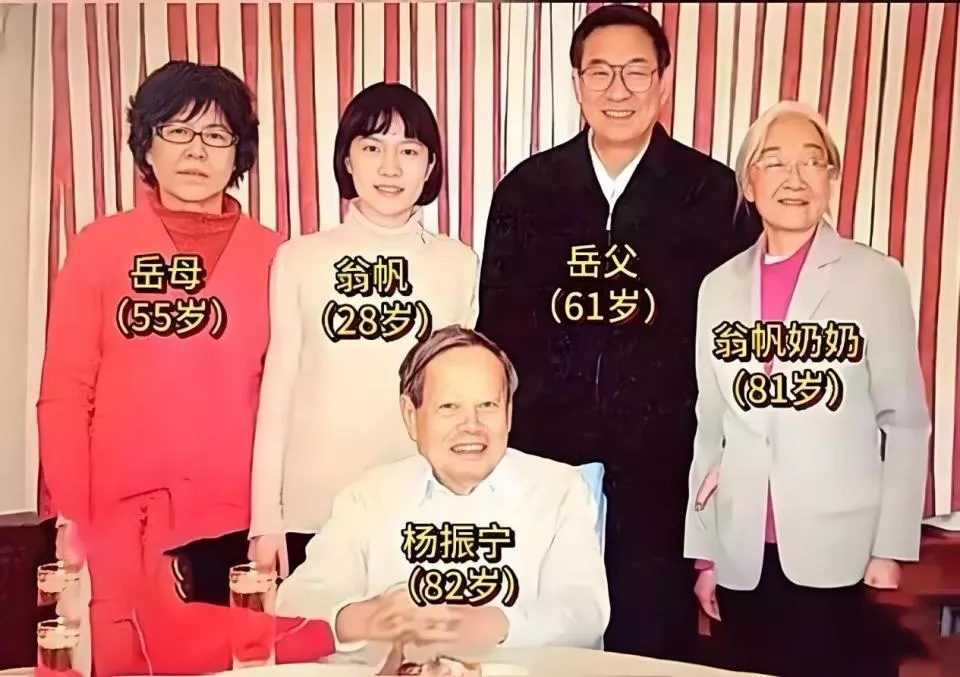 当时这张合照曝光后,不少网友纷纷调侃,在这张照片中,有翁帆的父母和奶奶,让网友们热议纷纷的是翁帆的奶奶年纪都比杨振宁小1岁。