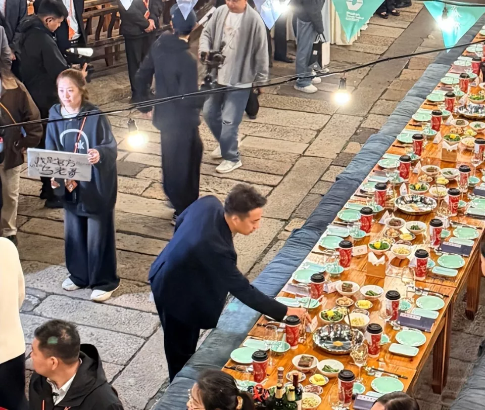 而且黄磊还举行了长街宴,就是让900人露天宴席横贯西栅大街,明星和路人们无隔离围坐,这一夜我们只是热爱戏剧的普通人,创意相当新颖前卫。