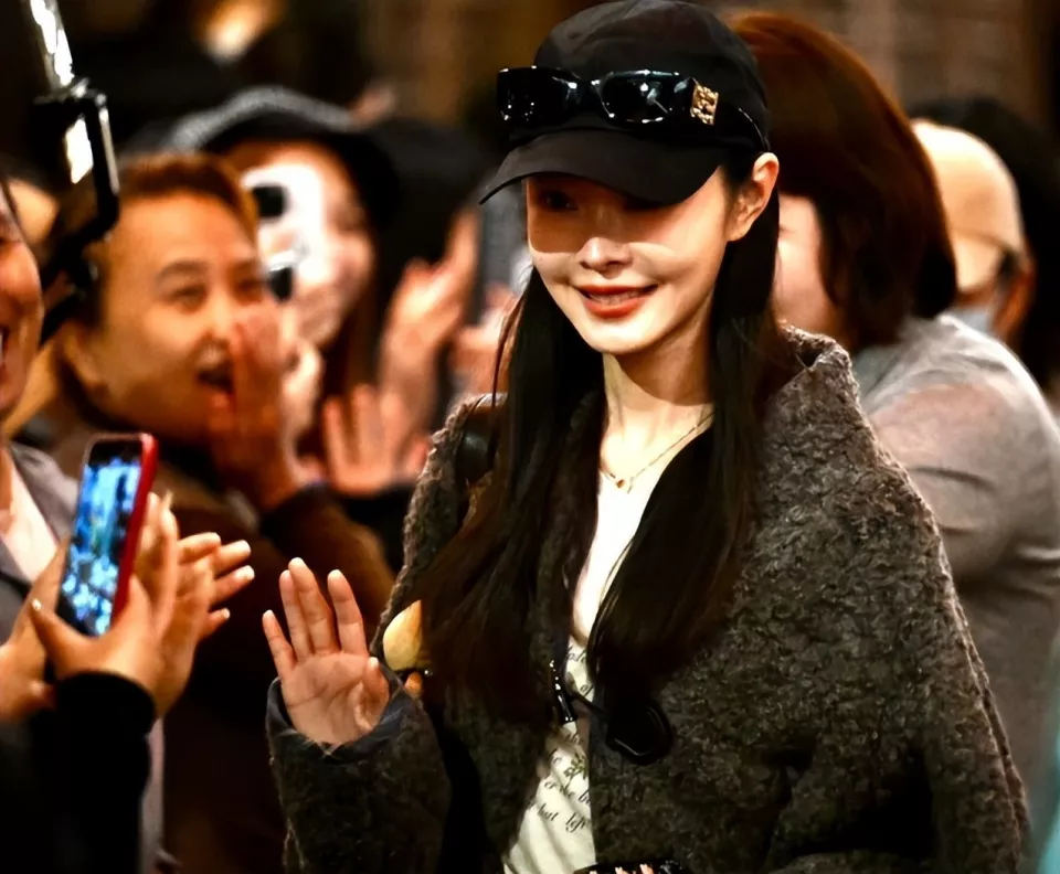 头发简单地披散下来,没有做任何的造型,甚至是素颜出镜,真是毫无偶像包袱啊。