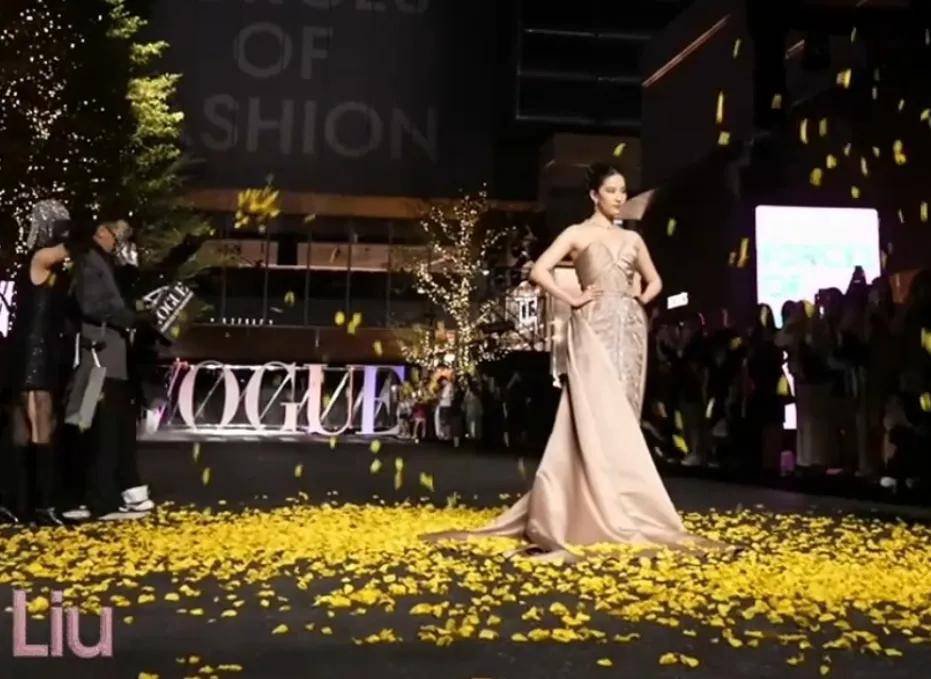 接下来视角换到刘亦菲,她有着除白玉兰奖颁奖典礼之外的多次成功压轴经验,到了VOGUE盛典,自然一路驾轻就熟搞特殊。