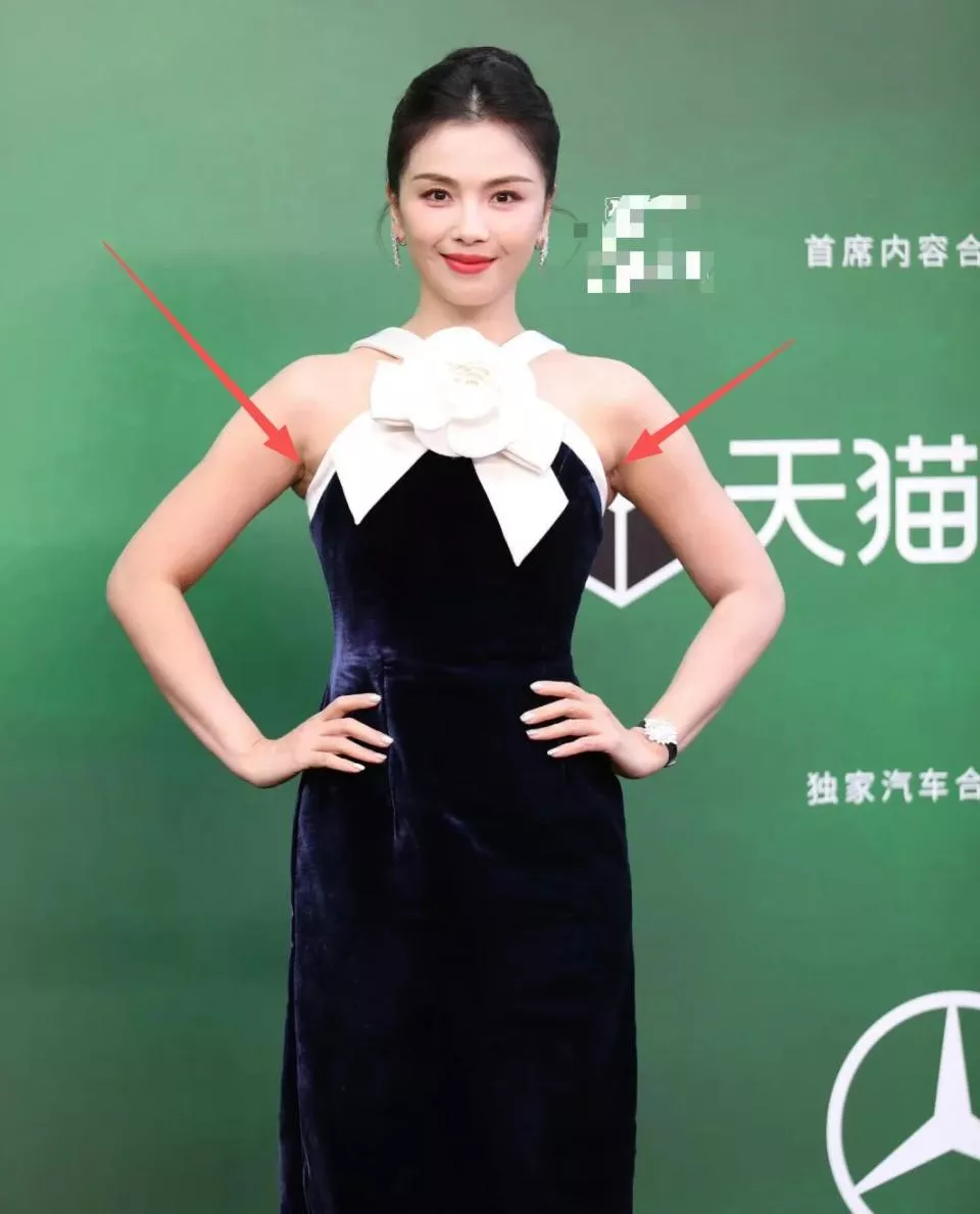 但在生图状态下,刘涛的“真实状况”就暴露了出来,腋下副乳的管理非常尴尬、腋下明显发黑,胳膊、肩膀看起来也非常粗壮,女神形象瞬间崩塌。