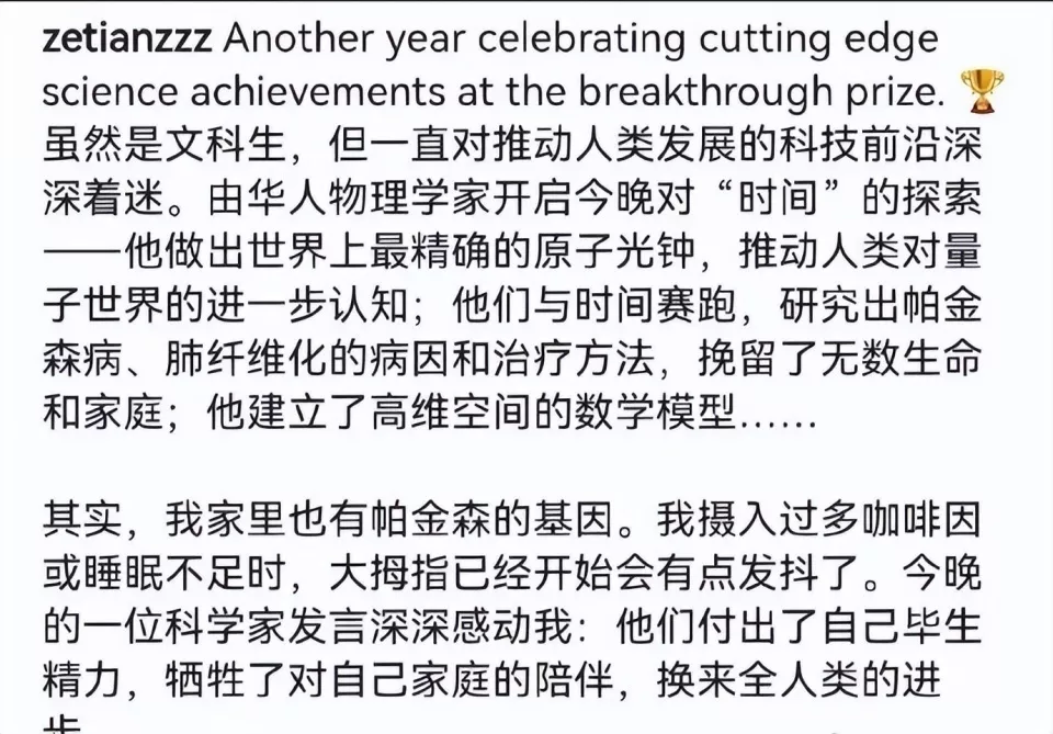 彼时的她,通过网络平台自曝家族病史:“其实,我家里也有帕金森基因,我摄入过多咖啡因或睡眠不足,大拇指已经开始发抖了。”