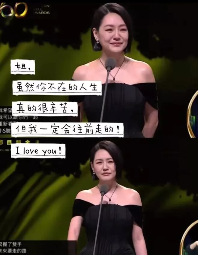在说完这句开场白后,越来越多关于大S的话被她讲了出来,好像要将获奖感言变成以“大S”为主题的作文演讲。